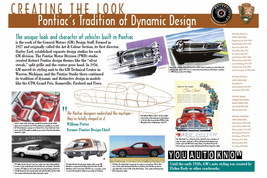 Formed in 1927 and originally called the Art & Colour Section, its first director, Harley Earl, established separate design studios for each General motors division to create the unique look and character of vehicles built in Pontiac.