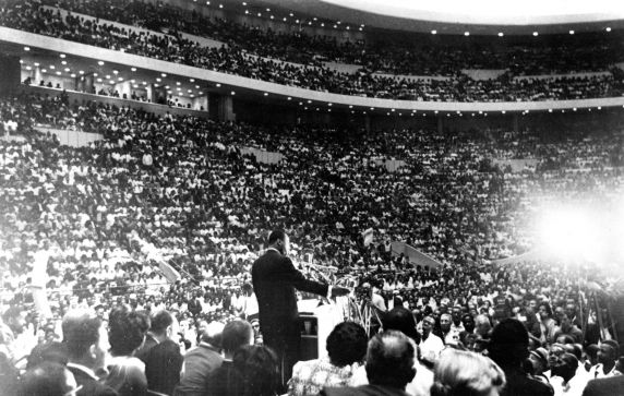 MLK speaks at Cobo ArenaDr. King speaks at Cobo Arena, June 23, 1963 (Reuther Library, WSU)